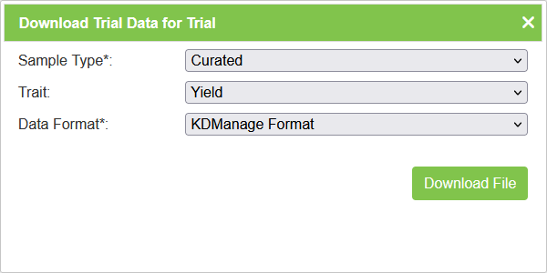 - Download Trial Data - produces a CSV file for importing into KDSmart which contains a trial’s trait results.