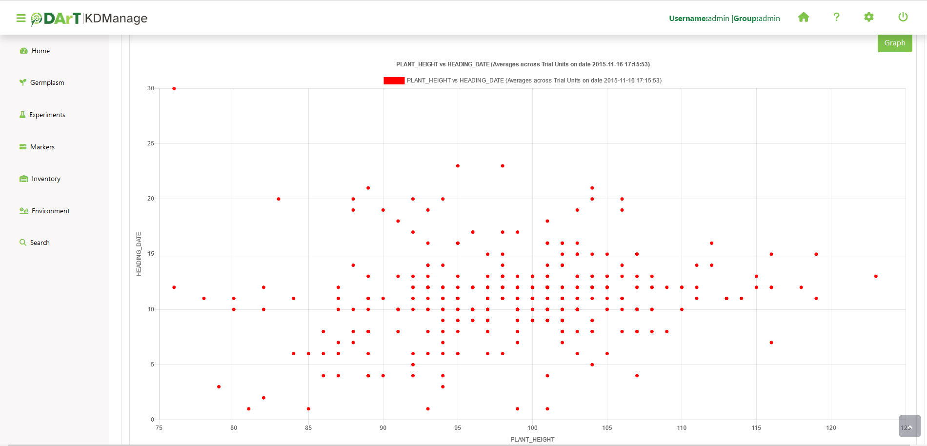 Trial data can be viewed in a graph which shows selected traits and value: