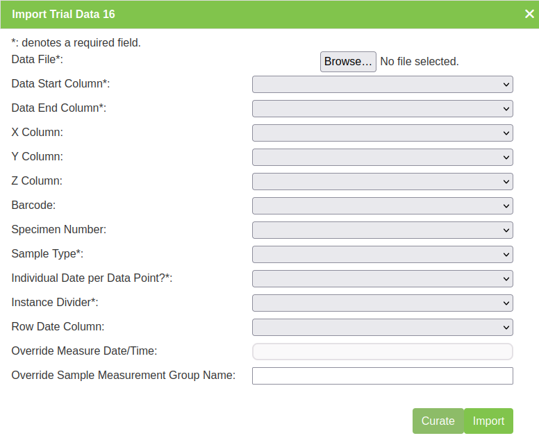 Existing trial data can be curated and imported as a separate instance in the Curate Data Tab.