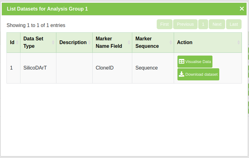List Datasets in the Actions Column for the required group in the Marker Data Management Page.