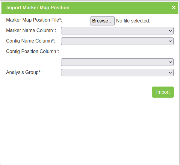 | Analysis Group | The analysis group associated with uploaded marker map positions. The analysis group must have a least one dataset. |