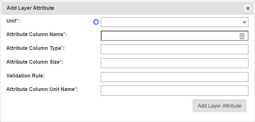 The fields for the Add Layer Attribute Window are described in the following table: